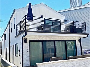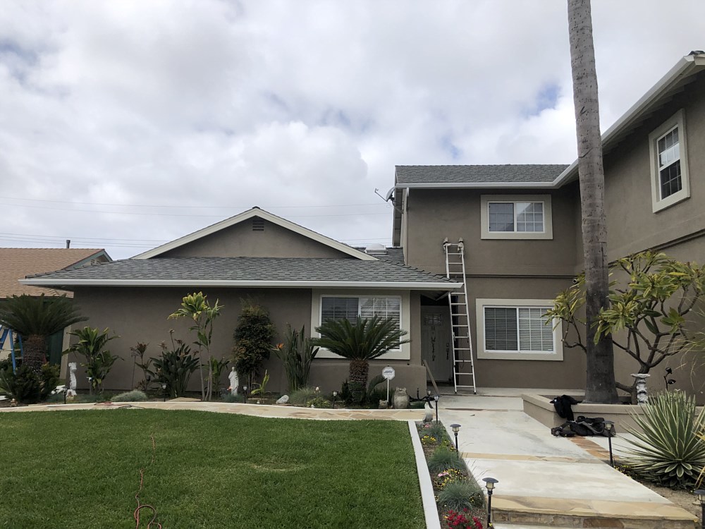 Black fascia with black custom smooth and round downspouts, Fullerton, CA -